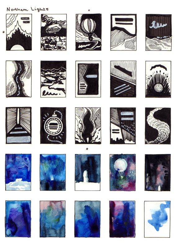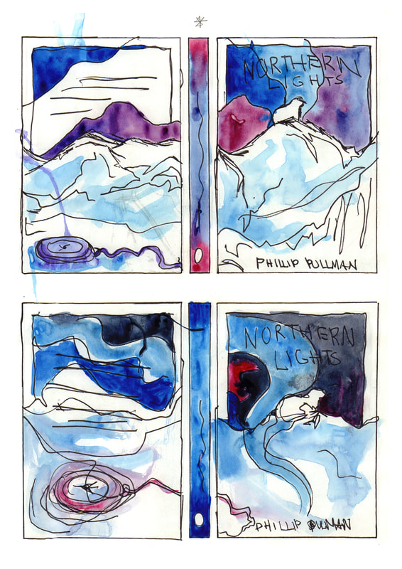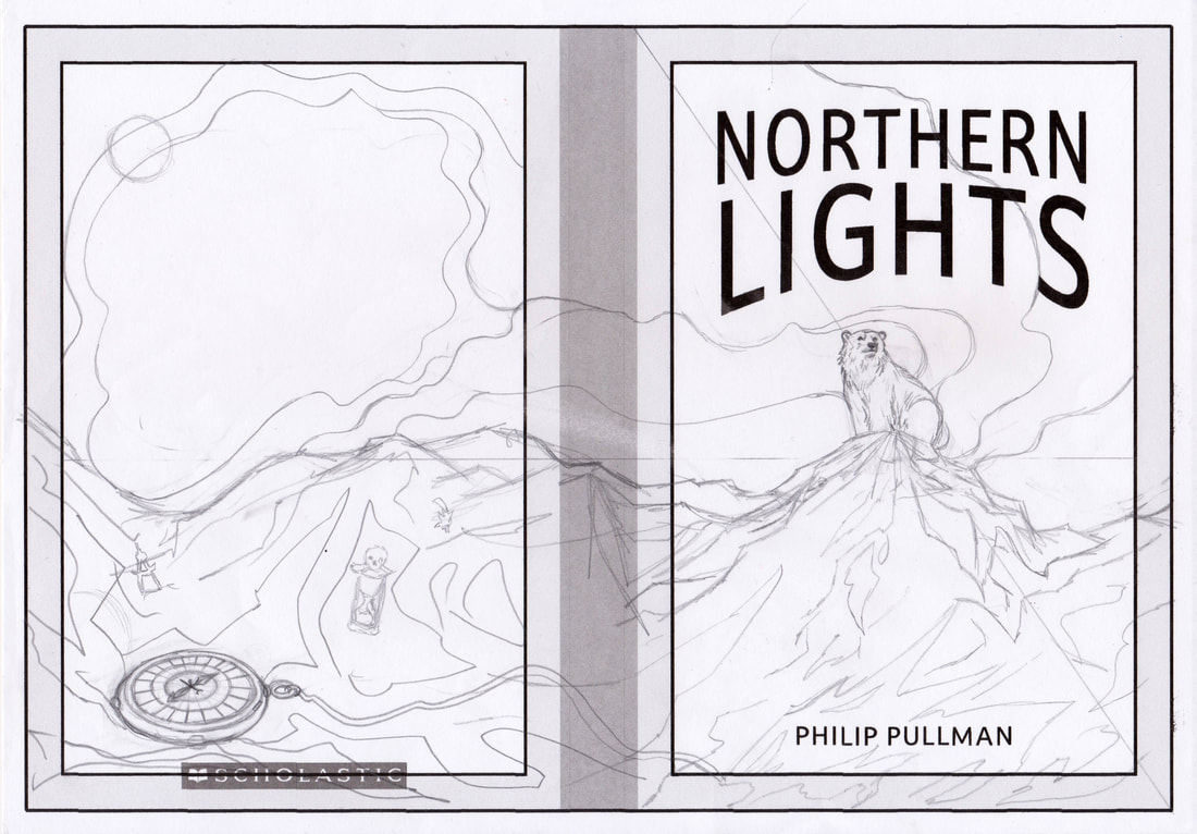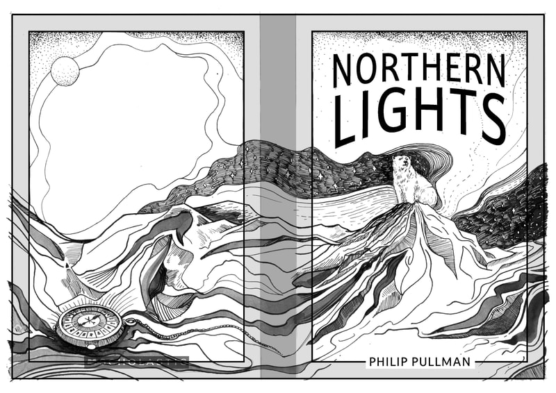 I was still not quite happy with the other two designs so I tried them in different ways, moving Iorek and the mountain further up which I think helped a lot so I was happy with that.