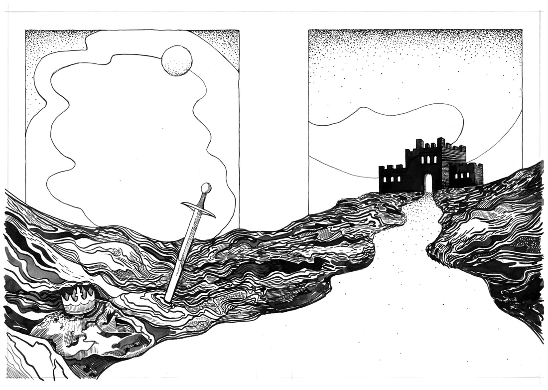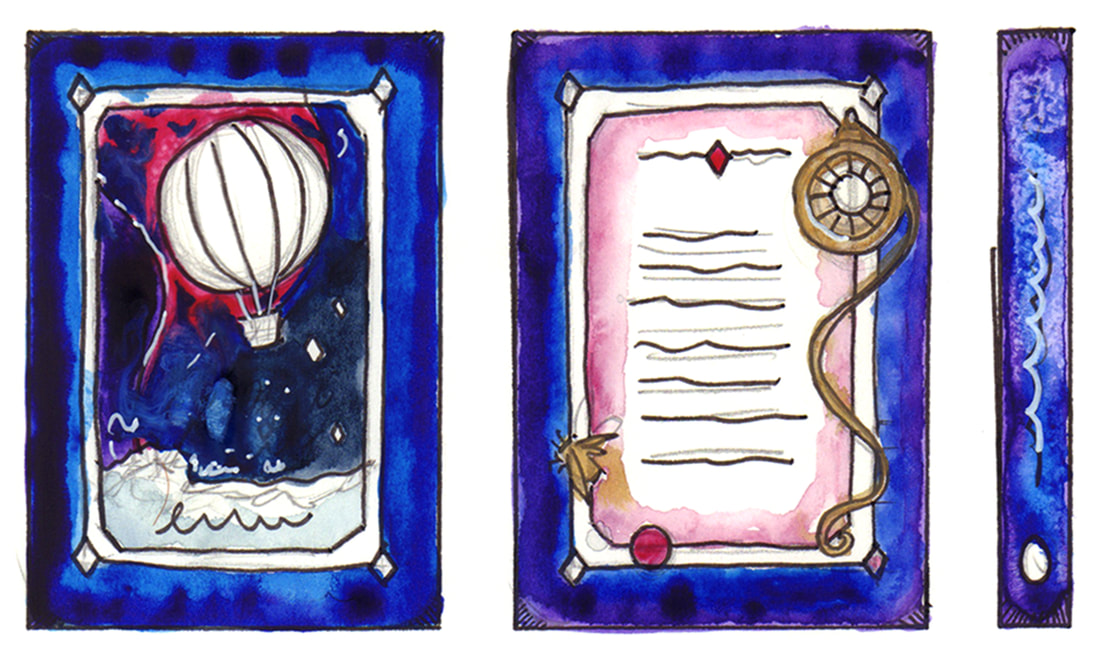 This is every stage of my putting together these book covers, I started with a pencil sketch, the onto dip pen and watercolour on a separate sheet. Finally the covers were completed in Photoshop.