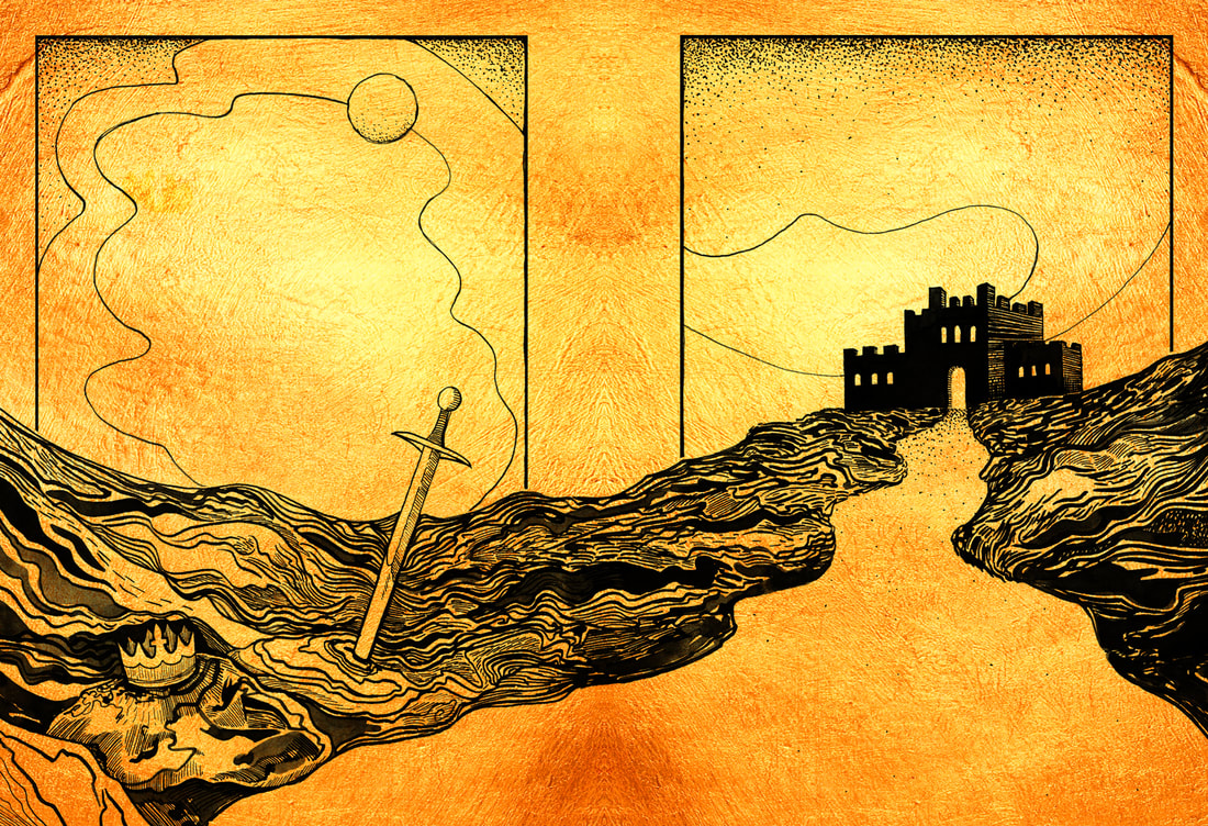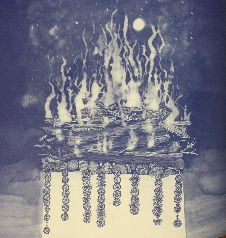 To create my final book covers I combined my ink drawing, with a fabric texture and finally a layer of metallic to be placed behind the other layers.
