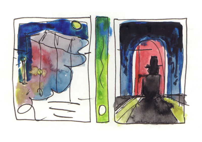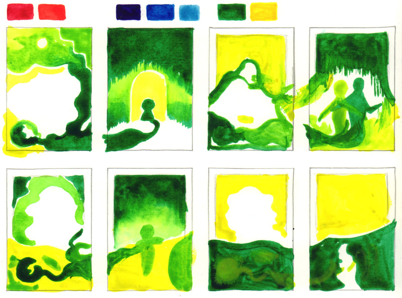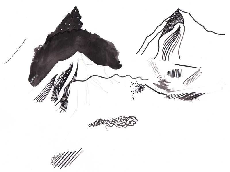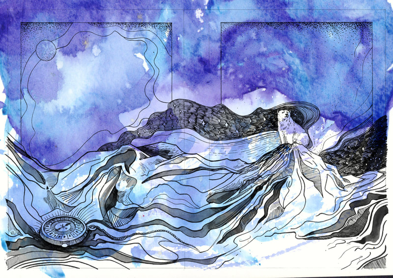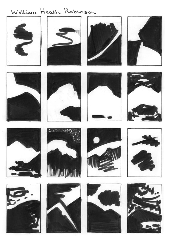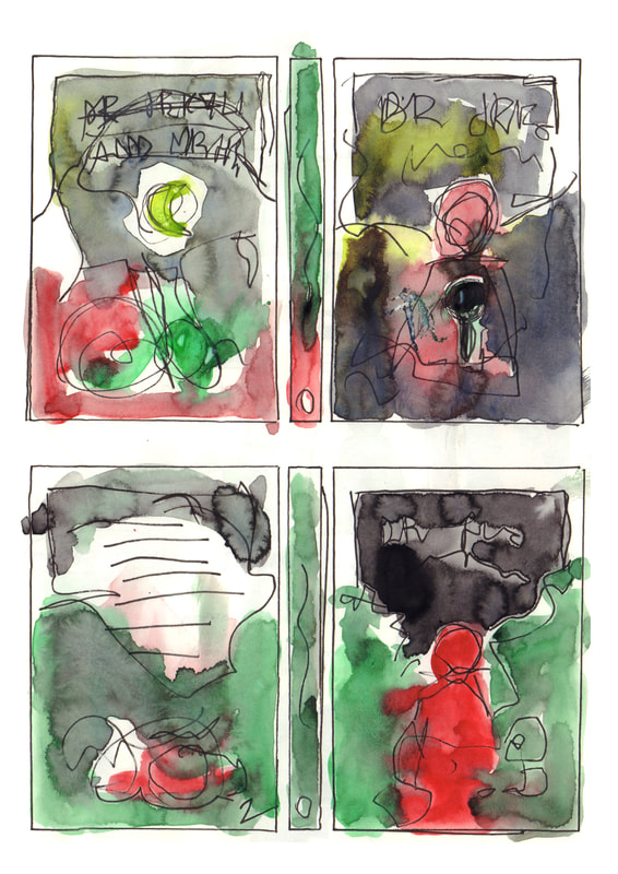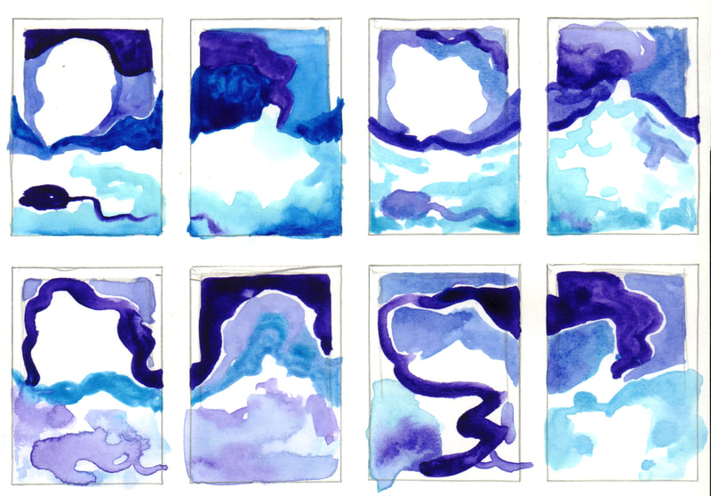 During some feedback with Dwayne he suggested it might be a good idea to explore a contrast of makes, as I am planning on using dip pen for the design it could provide a good contrast if I used more loose watercolour marks alongside it. This isn't something I have done before but I thought it sounded fun so I tried it out.