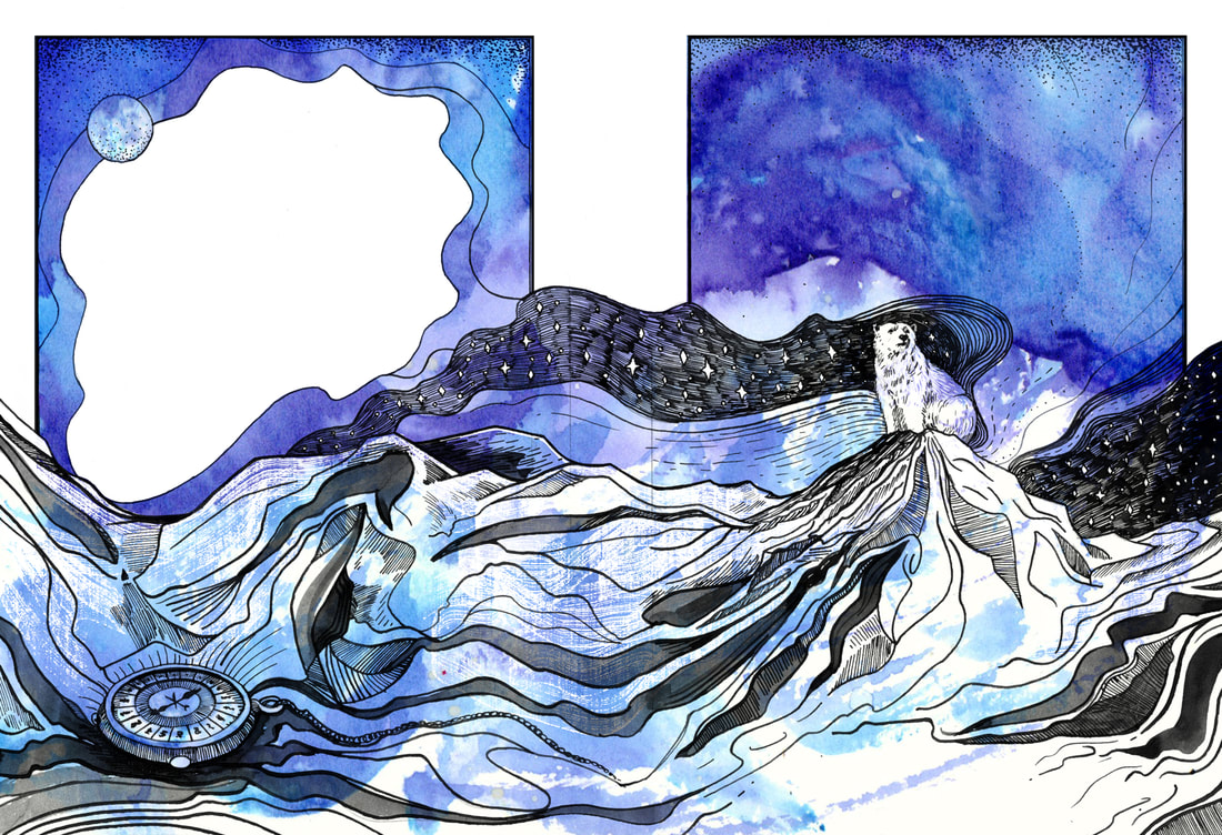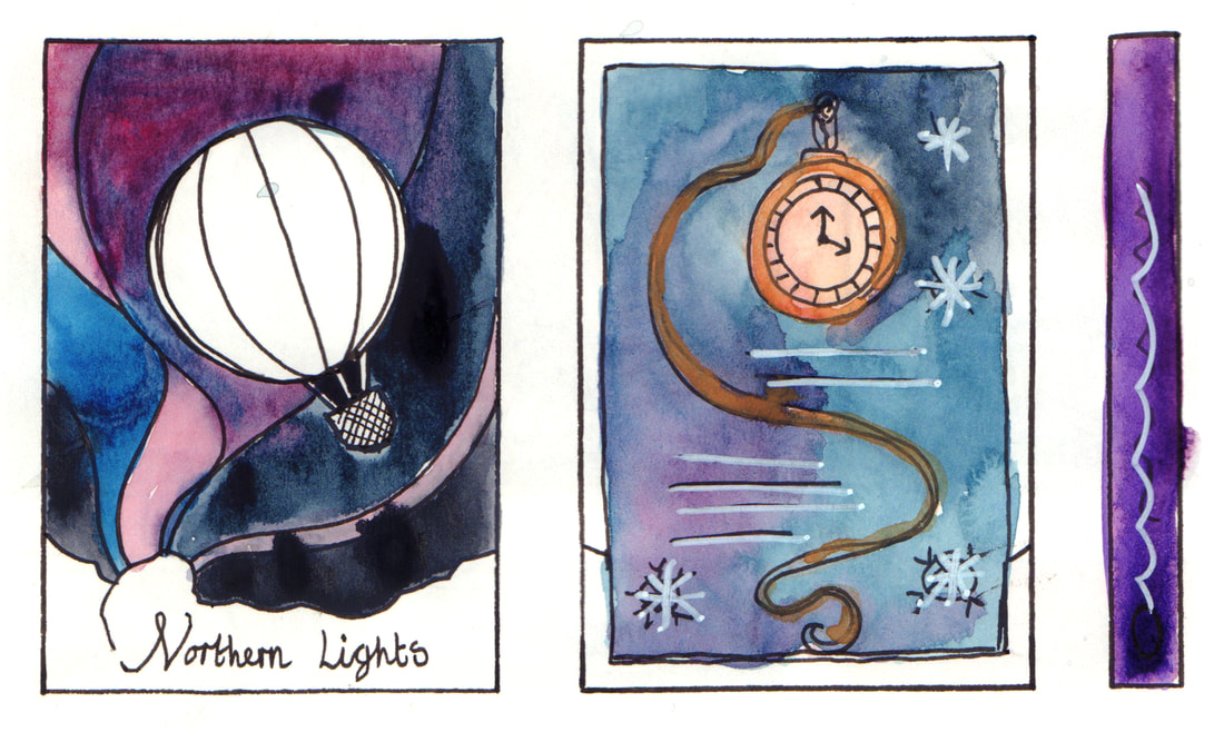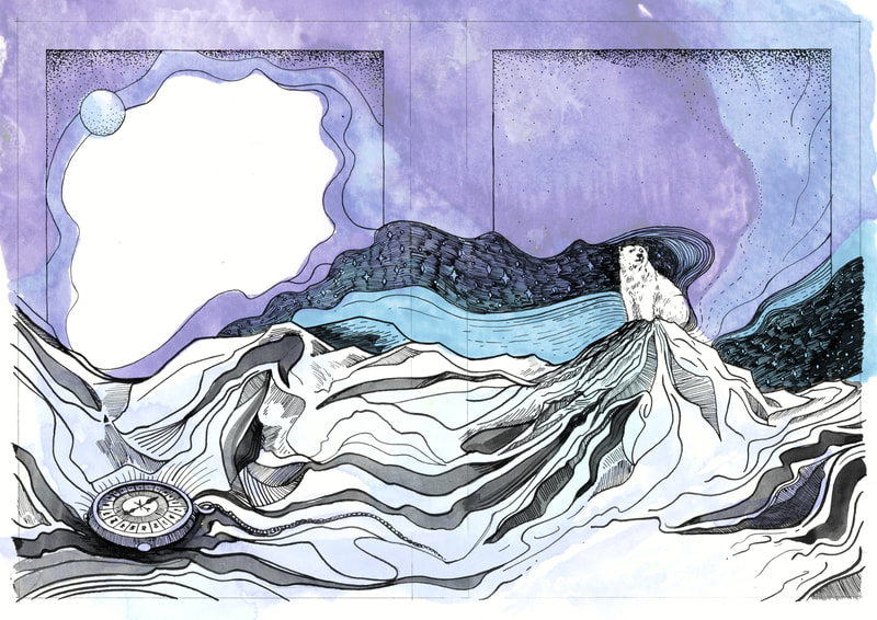 This is some inspiration I found during this project, the majority was from the Museum of Scotland during the trip to Edinburgh. But I also for a very pretty copy of an M.R.James Ghost Story book whilst meeting a friend. It was good to see a polar bear in person during this project and the crystals were very helpful to give me an idea of how to depict the mountains in Northern Lights.