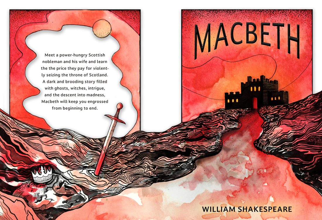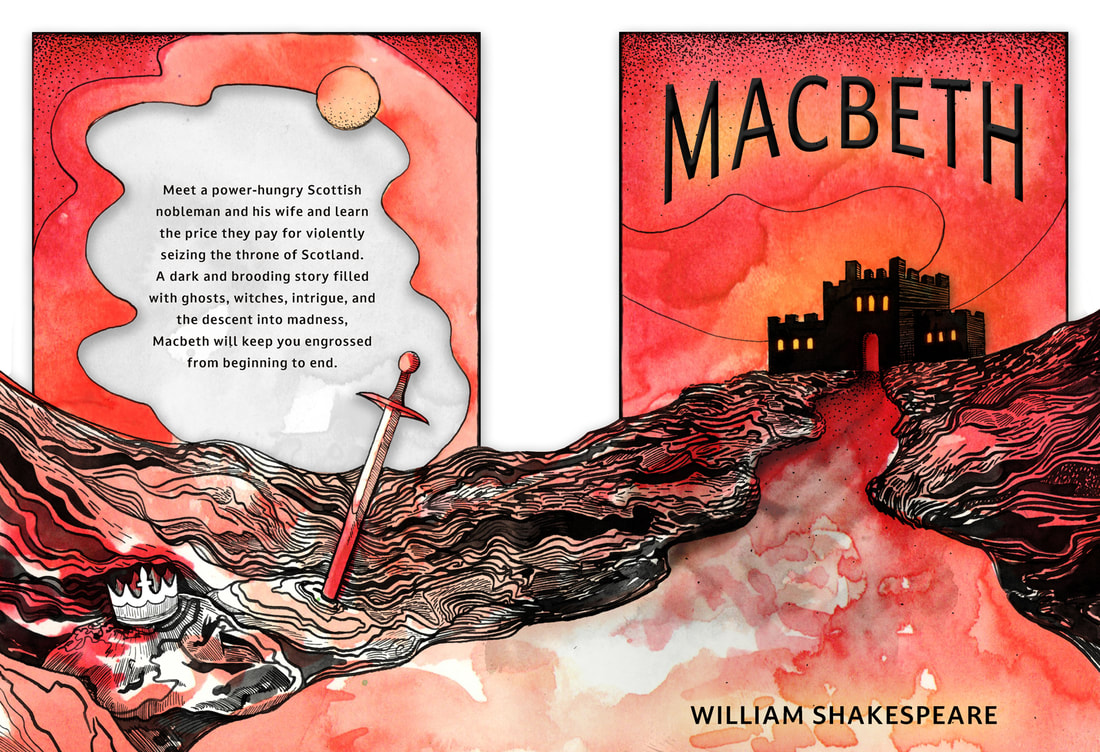 I decided to mock up a set of designs for the Inkymole feedback, so I could see where I was heading and be able to show that to Sarah during the feedback. I decided to take the Macbeth cover forward and allow it to be the basis for the other two covers, I really like this design and I am pleased that it doesn't feature the usual things a Macbeth cover would.