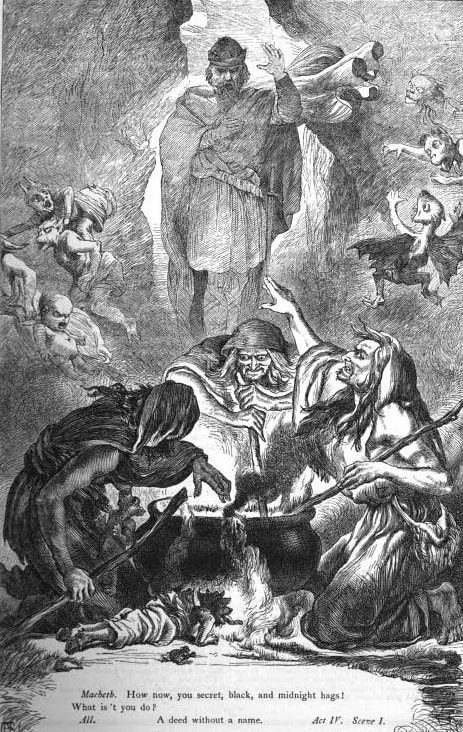 "On a bleak Scottish moorland, Macbeth and Banquo, two of King Duncan's generals, discover three strange women (witches). The witches prophesy that Macbeth will be promoted twice: to Thane of Cawdor (a rank of the aristocracy bestowed by grateful kings) and King of Scotland. Banquo's descendants will be kings, but Banquo isn't promised any kingdom himself. The generals want to hear more, but the "weird sisters" disappear...….." |