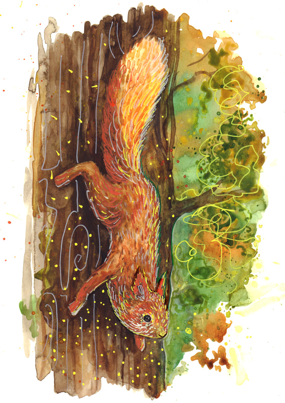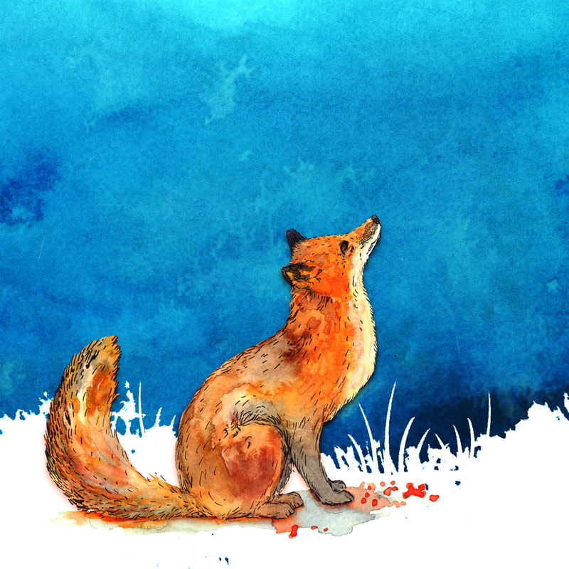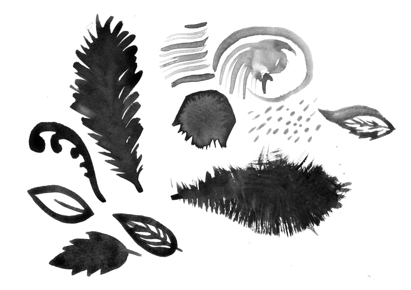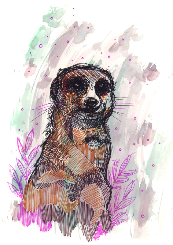 This is the pieces that went together to create my final illustration, layering loose watercolour, with a tighter ink layer helped me to both define the animals whilst keeping freedom of brush strokes.