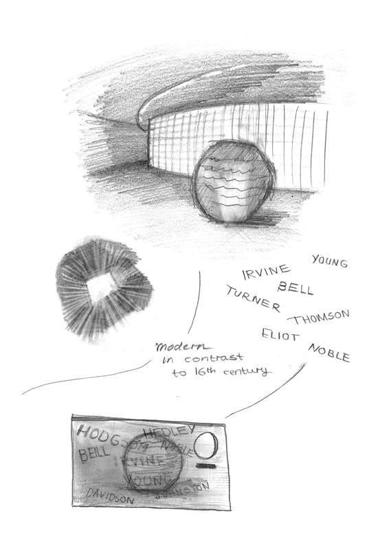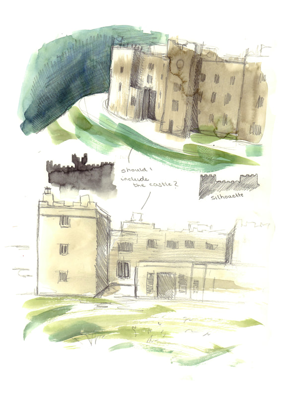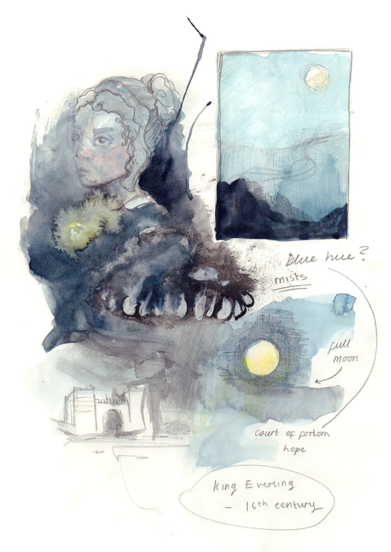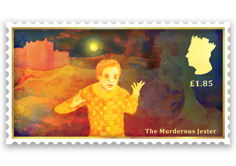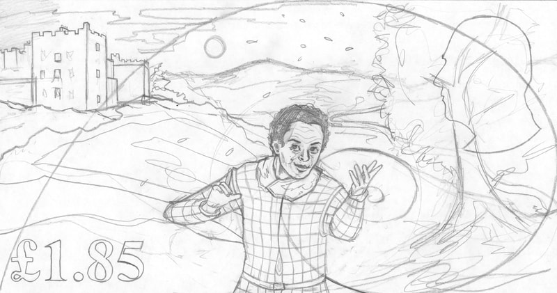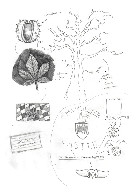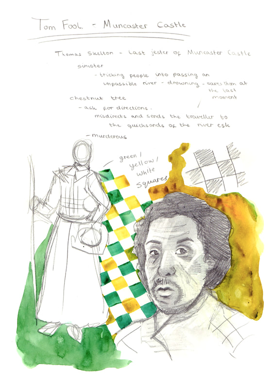 Finally I started to sketch ideas for Tom Fool the murderous jester of Muncaster Castle, I looked into what Tom wore and the symbols and locations that surrounded him.