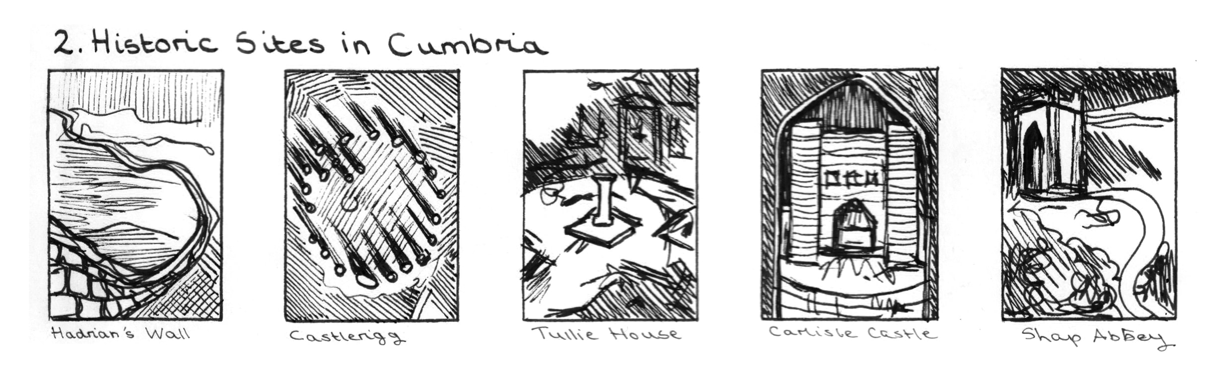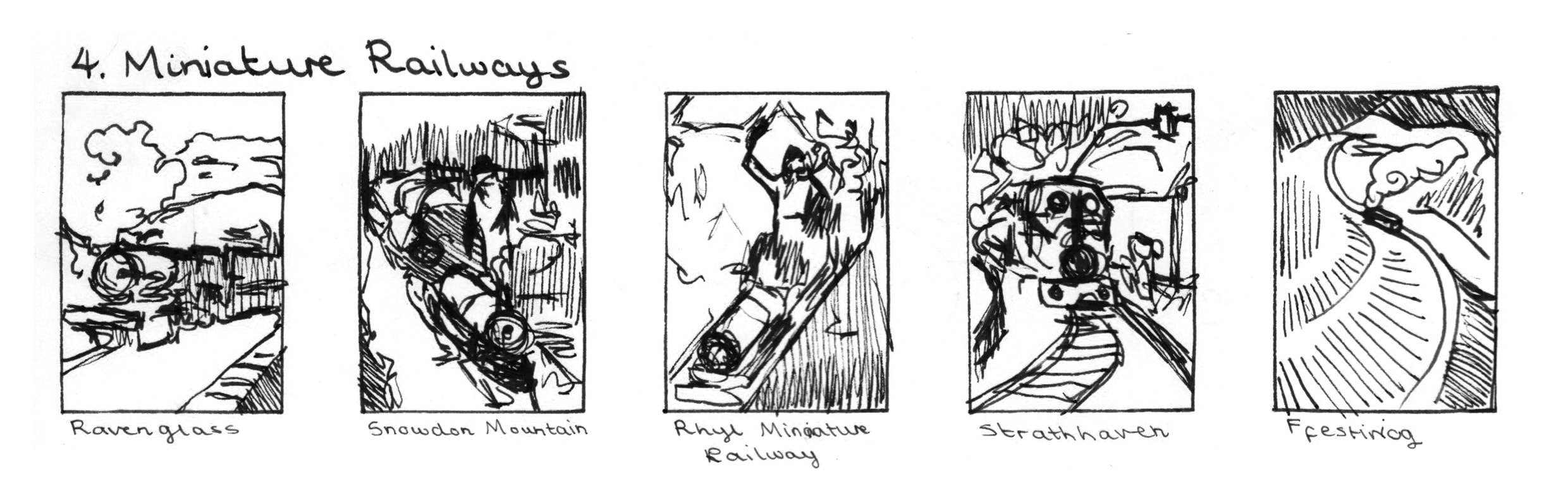 My second idea surrounded the historic sites within Cumbria, some of these I have visited and some I haven't so I thought it could be a good way to discover the environment around me and explore something I don't usually like to draw/paint which is buildings and landscapes. Miniature Railways