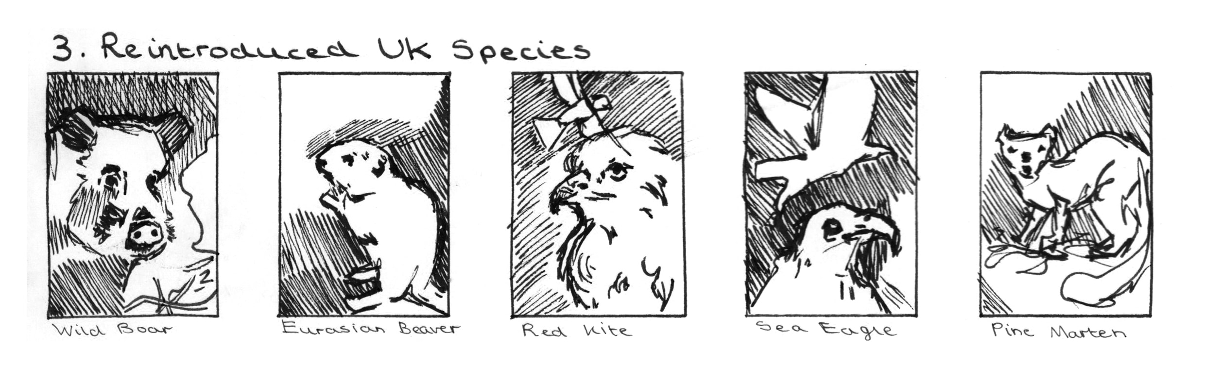 As this is a celebratory set of stamps my brain immediately went to reintroducing species that were lost from the UK and have later been brought back. This set of stamps would be to celebrate the amazing conservation efforts that take place across the UK. |