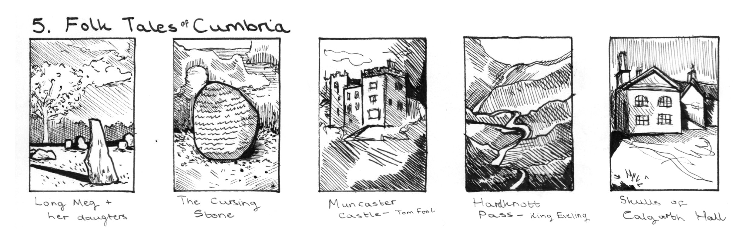 My final concept for the stamps is the Folk Tales of Cumbria, it is a topic that I am interested in but I haven't done that much research into before this point so I think it would be an interesting topic.