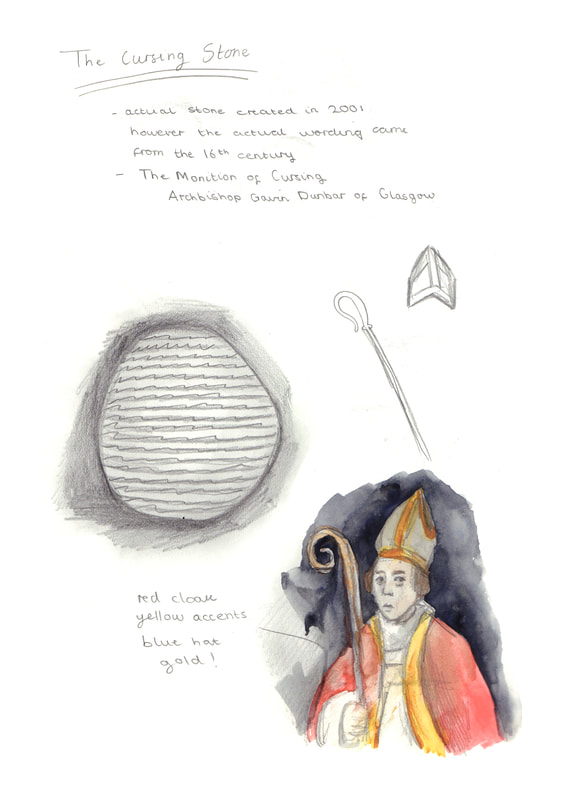 Next I started to sketch ideas for the cursing stone, this concept is causing me a bit of confusion because researching a very old curse and a relatively new art installation, combining these in some way is proving to be difficult. I think I want to include the revivers somewhere either within the stamp of as part of the packaging as apposed to the Archbishop as I feel they have more relevance.