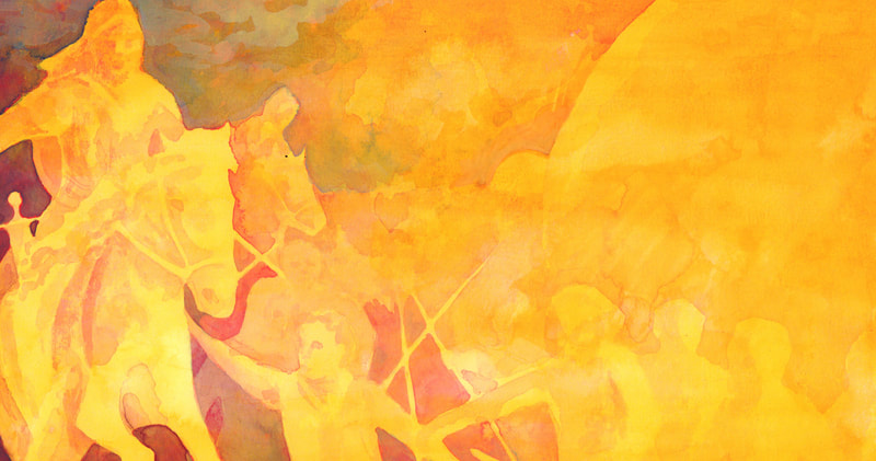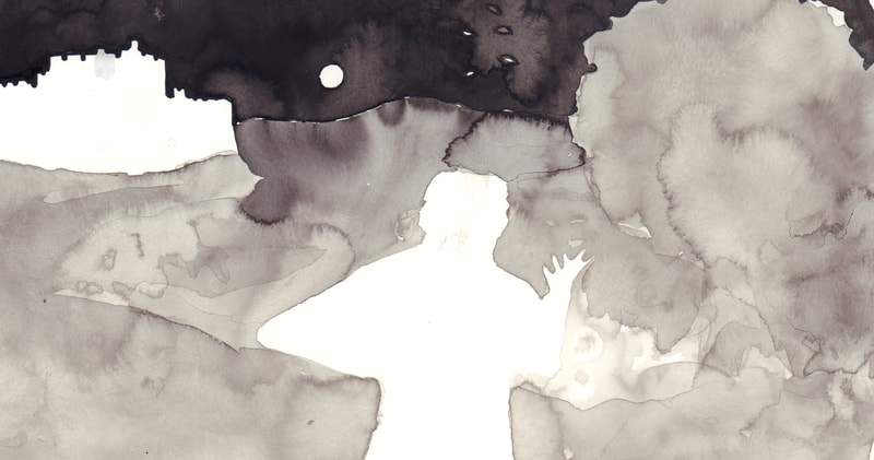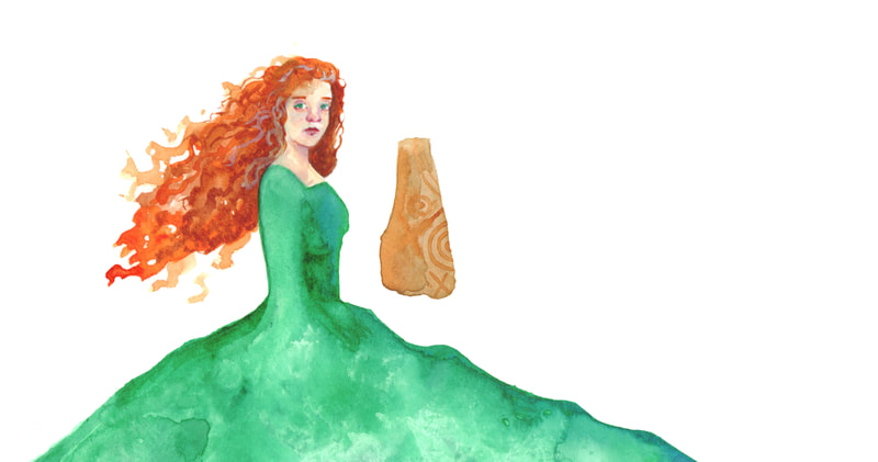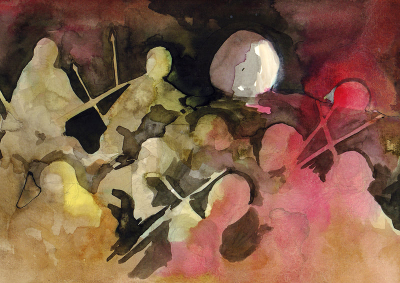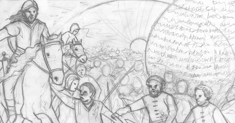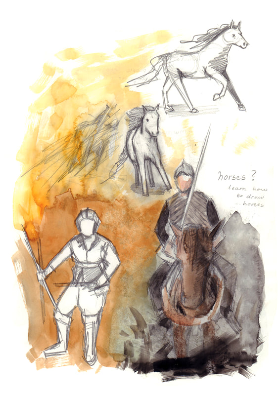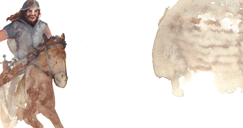 After I decided not to pursue the tapestry style, I used ink to create these simple compositions. My favourite was the battel scene, I liked the tone contrast and red tone.