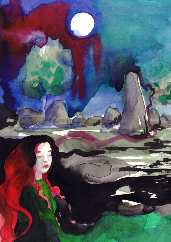 I am very pleased with how these illustrations turned out, I really love the colours and they definitely make me think of magic, myth and Halloween which fits well with the theme.