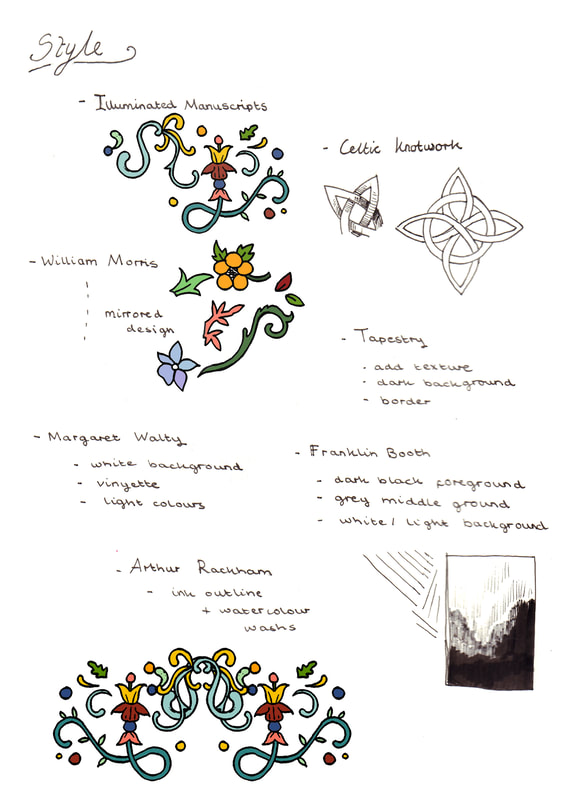 When I was thinking about folk tales Celtic knotwork immediate came to mind, I really admire the use of colour and shape to create forms that interconnect and create a unified image, this is definitely something I want to look into.