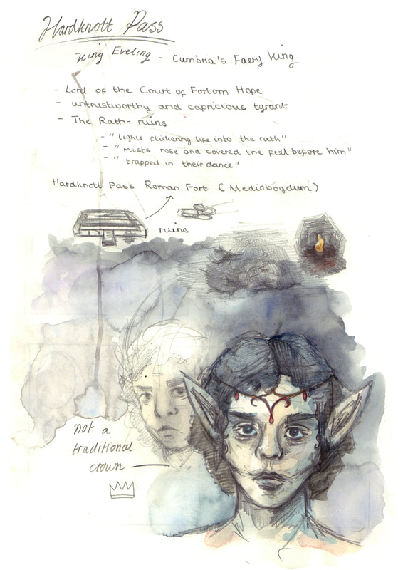 "The Hardknott Pass, through the Keswick Fells, on the old King’s road, goes from Ravenglass to Ambleside. It is a steep and narrow pathway, with many a bend and twist on its way, winding through the deeper vales between the fells. Overlooking the pass, on a steep and sheer cliff, sits the ruins of an ancient hillfort, from the oldest days known to Albion. Queer in design, unlike the forts built by men, nor by elves or dwarves, the round-fort’s history is one of great mystery. The local folk of the fells and dells name it the Rath. Writings across the centuries suggest this is the name it has always been known by – similar fortification names can be found all across Britannia. The Rath has an interesting amount of folklore surrounding it. The Rath was said to be the home of King Eveling, who was Lord of the Court of Forlorn Hope. Tales and legends of King Eveling echo across the history of the Northern parts of Britannia, most painting him to be an untrustworthy and capricious tyrant. King Eveling had sought to dominate all around him, and had for many years been locked in war with the Iceni, the Fae who guard the land known as Britannia. Many fantastical tales abound of the battles between the two Fae races, which are recorded elsewhere. By the time of our tale, King Eveling ruled only his Rath and the Fellside, having grown insular and bored of the outside world. In the years following the death of Uther, Warlord of Albion, after his young son Arthur had pulled sword from stone, the young King and his Court did tour the land. Some nobles and dukes and princes and kings bent the knee and their banners joined his host. Others stood against him, and were soundly defeated. Some were offered clemency, and learnt of Arthur’s great mercy. Others were unrepentant, and their names have faded from history. Though seemingly inconsequential, the tiny kingdom of King Eveling was visited by the Boy King.