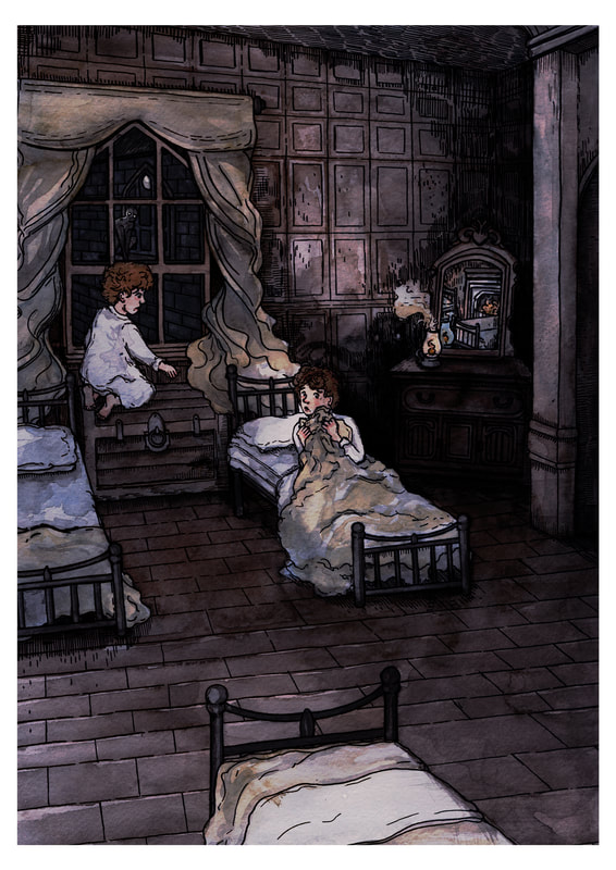 These illustrations were created for "A School Story by M.R.James", as part of a collected ghost stories anthology.