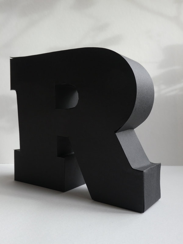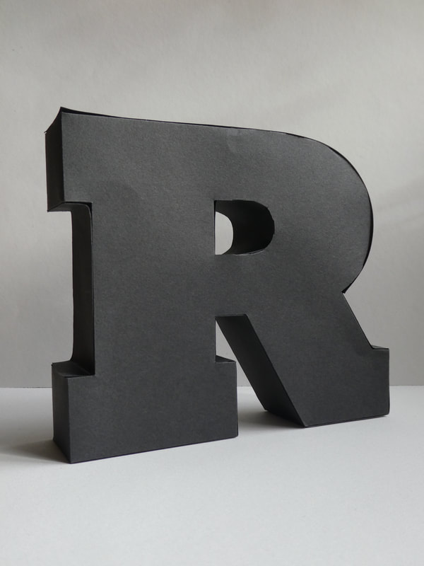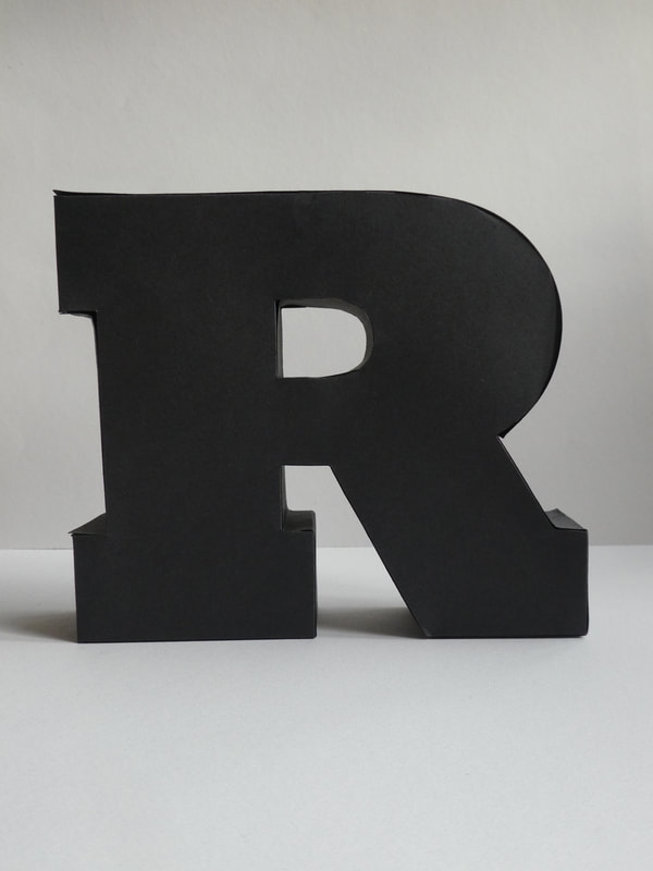 Using black, thick paper/thin card create a three-dimensional capital letter "R"