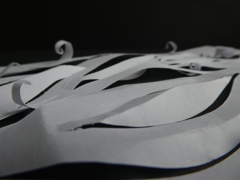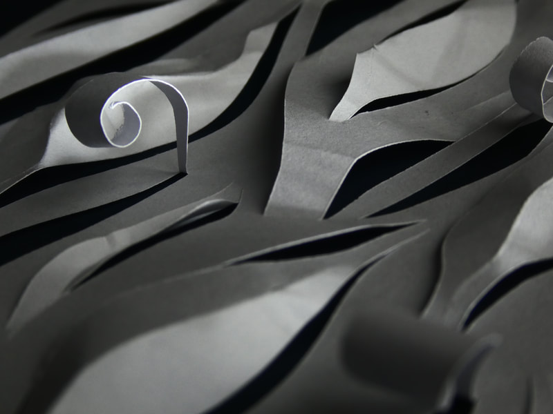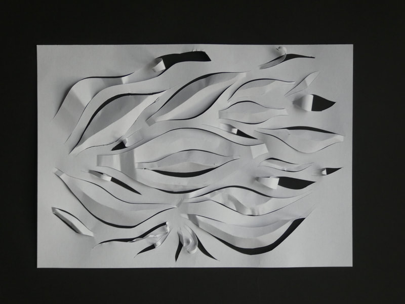 Embossing shapes was a difficult process, I cut out the shapes using an extremely thick card which I then embossed into white paper.