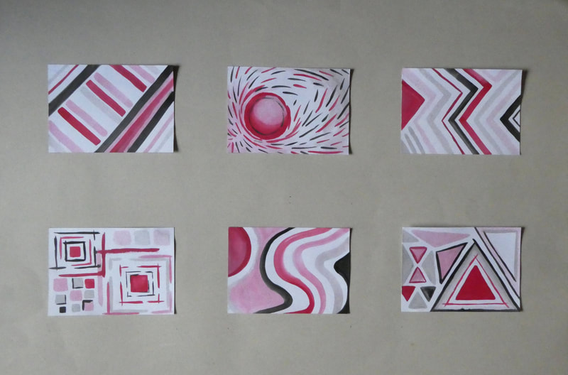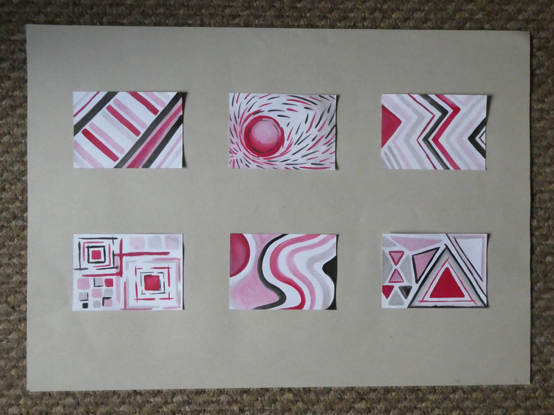 Surface mount six postcards on mid grey, A2 sheet of thin card.