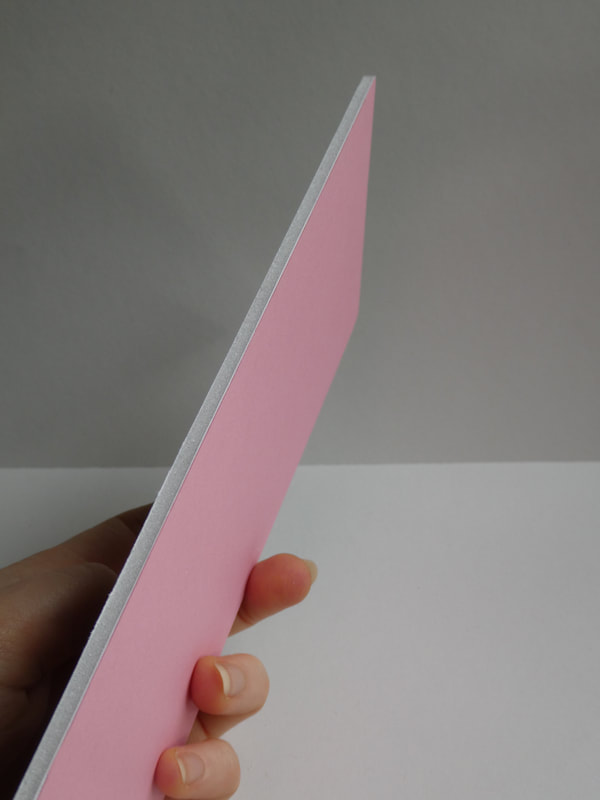 Flat mount a piece of coloured card 210mm x 90mm onto a piece of foamcore.