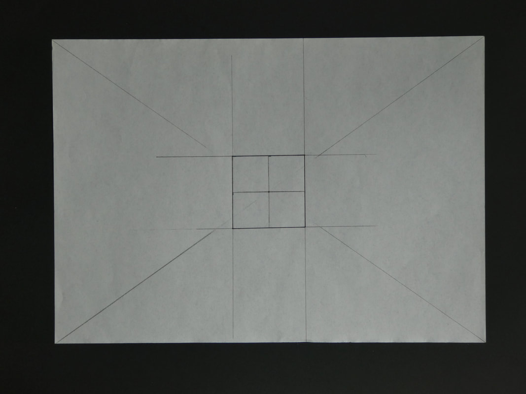 I worked out the middle of a sheet of A4 paper and drew the square out on one sheet of layout paper, which I then used to create a perfect square on a plain sheet of layout paper.