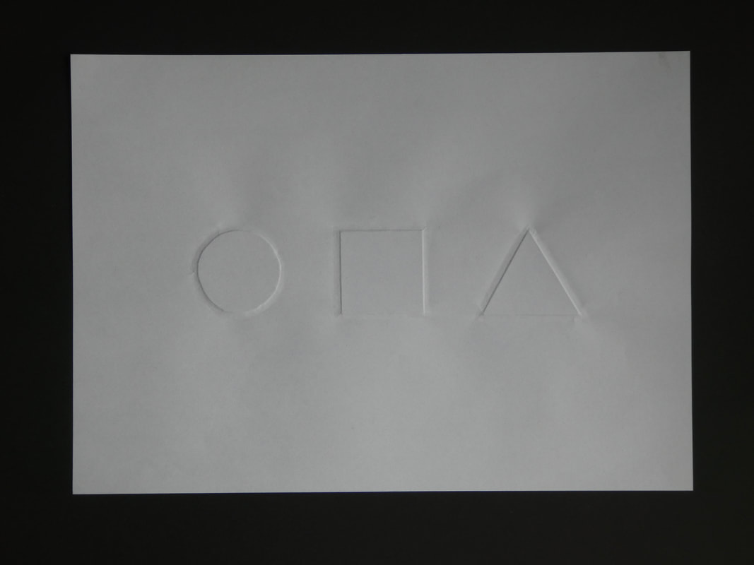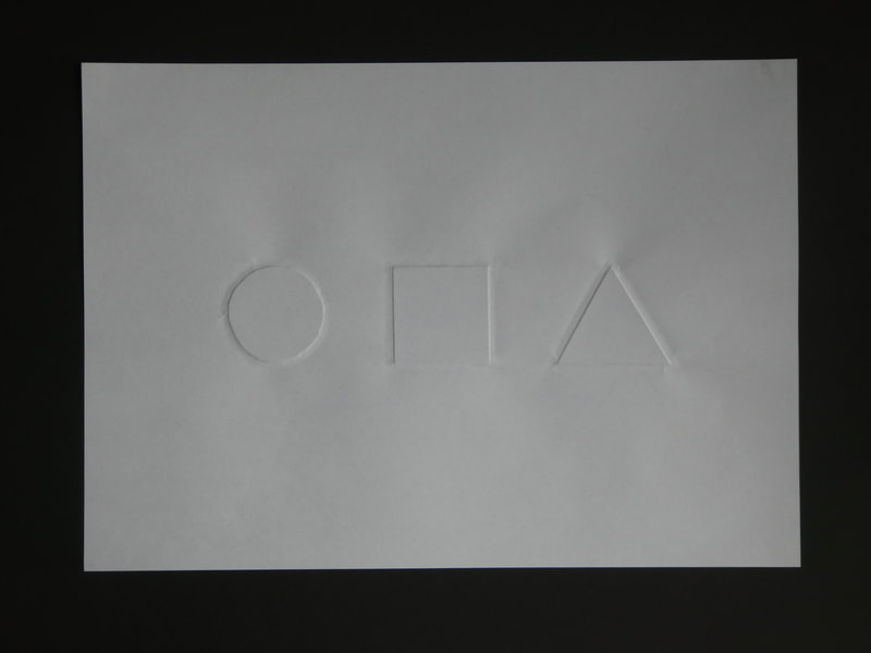 Emboss a circle, square and equilateral triangle onto a sheet of white, A4 cartridge paper.