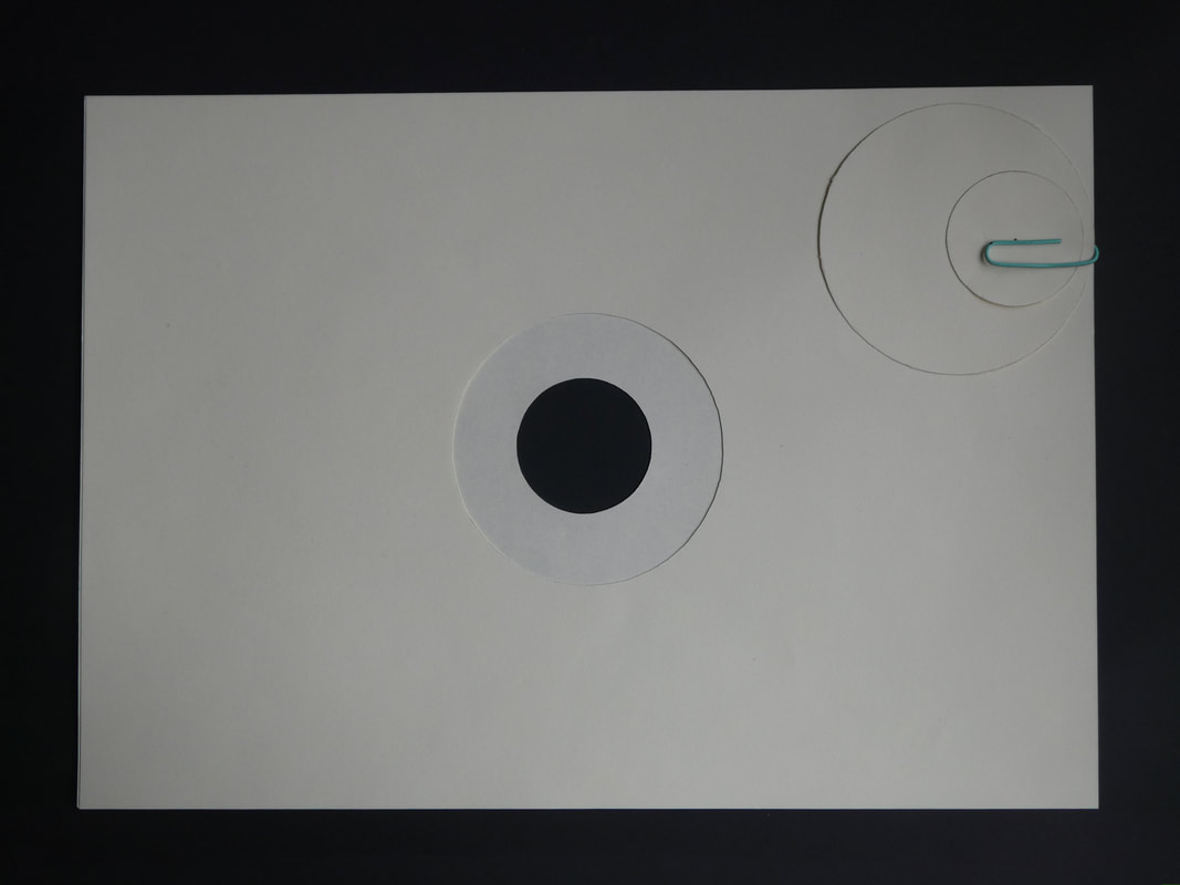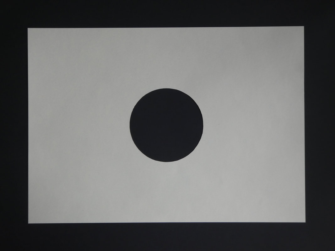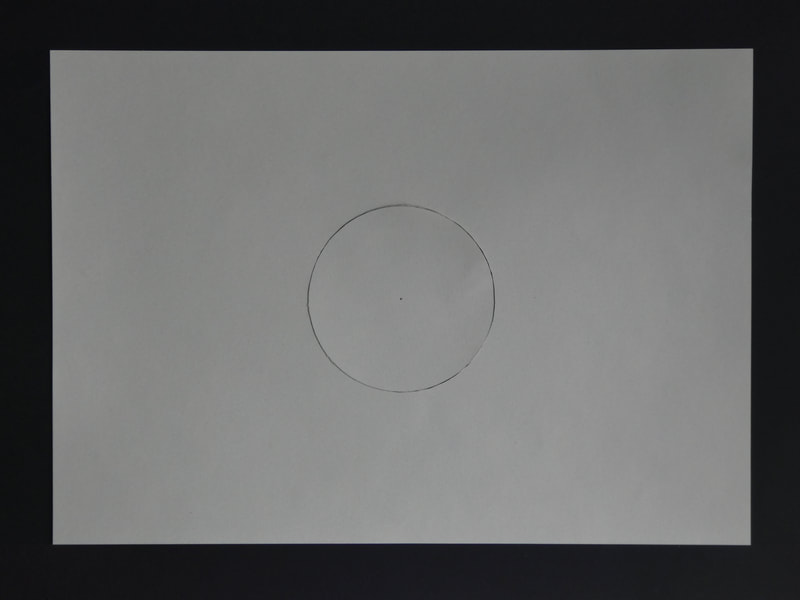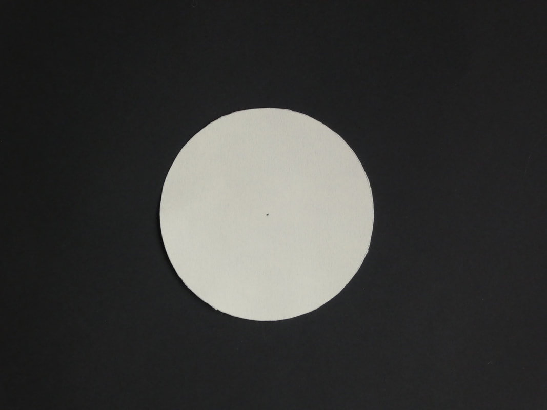 Take an A4 piece of thin card. Using a compass draw a circle with a 40 mm radius, centred on the sheet. Cut out a perfect circle.