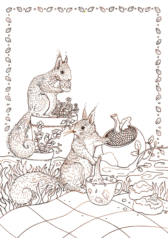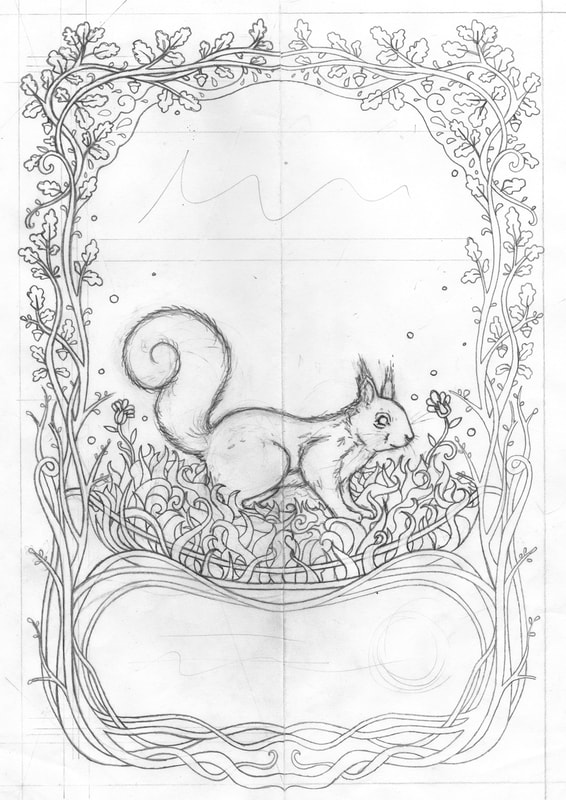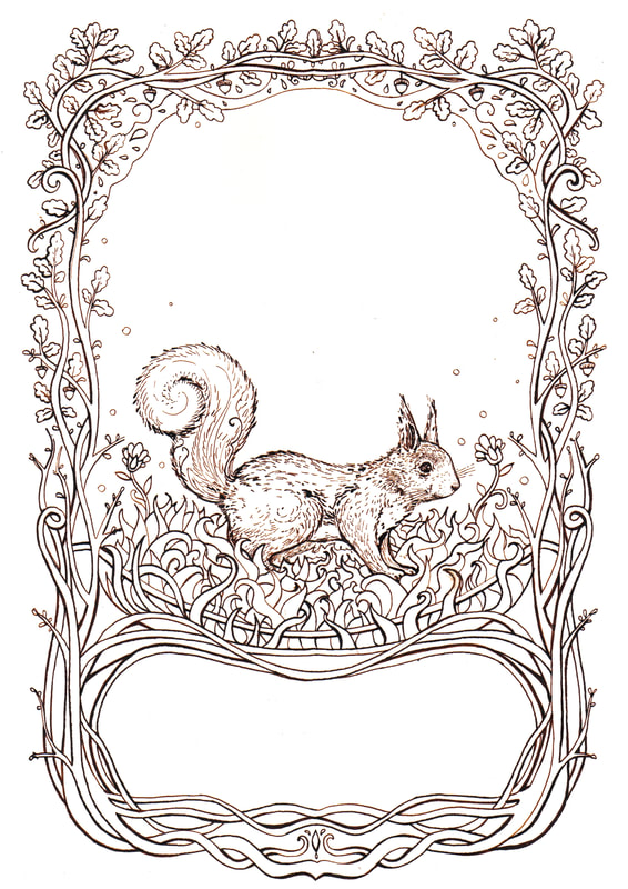 For the fundraising poster I decided to look at Art Nouveau artwork for inspiration. I knew that I wanted the poster to have an earthy yet elegant feel to it. Therefore I felt the inclusion of a border was logical, I especially liked the idea of adding autumn leaves to the poster as red squirrels are very connected to the environment and wider health of the trees.
