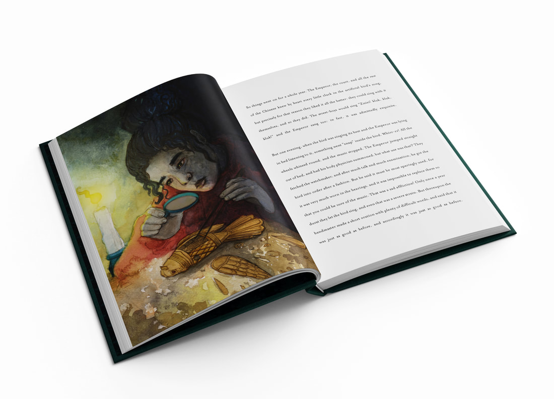 The Brief: To create at least one interior illustration and a cover at A4 scale for "The Nightingale" written by Hans Christian Andersen.