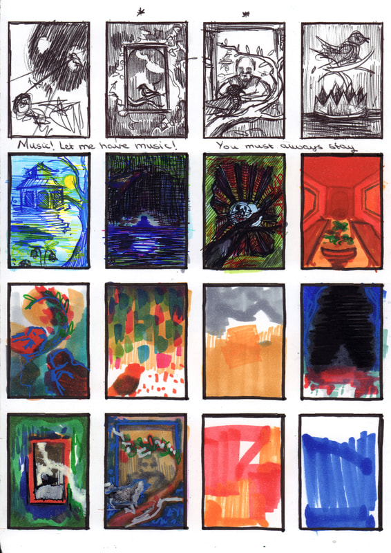 Initially to start the Nightingale project I created some very quick thumbnails these were created with a black pen and some colour.