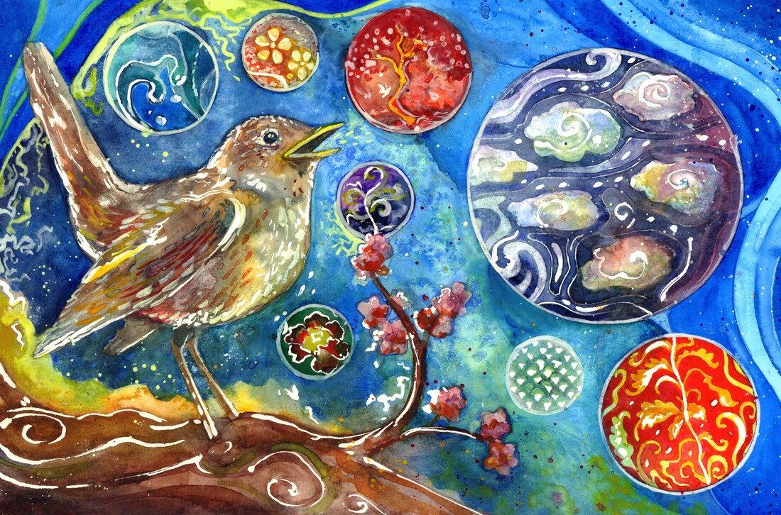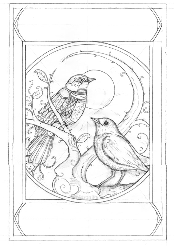 This is a painting of a Nightingale and some patterns, pattern is very important within Chinese culture and I wanted to include this somehow.