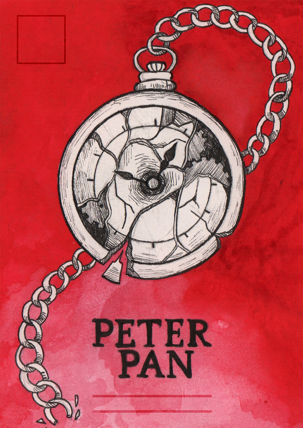 For the pocket watch design I tested different layouts and colours, all with copic markers which I later regretted as they looked very streaky, but from this I learned that I liked the original layout best. However I preferred red as a background colour because it gave the watch more presence on the page.