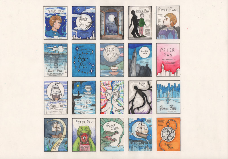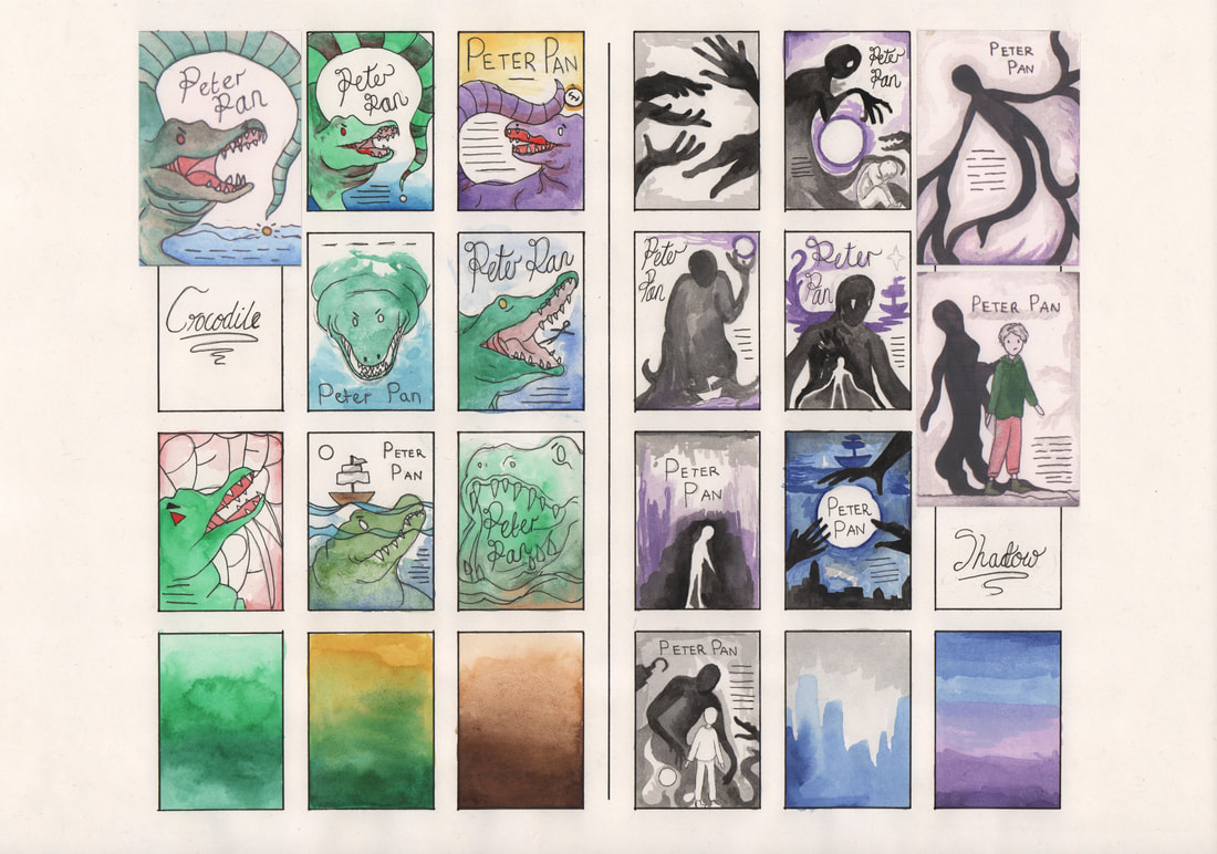 Moving onto the development of the "Shadow" design; firstly I got a feel for the shadow hands by creating a different thumbnails. I ended up liking the blue shadow design best because it created a moody design. This design gave me the space to add in multiple shadow hands that were all converging on the title.