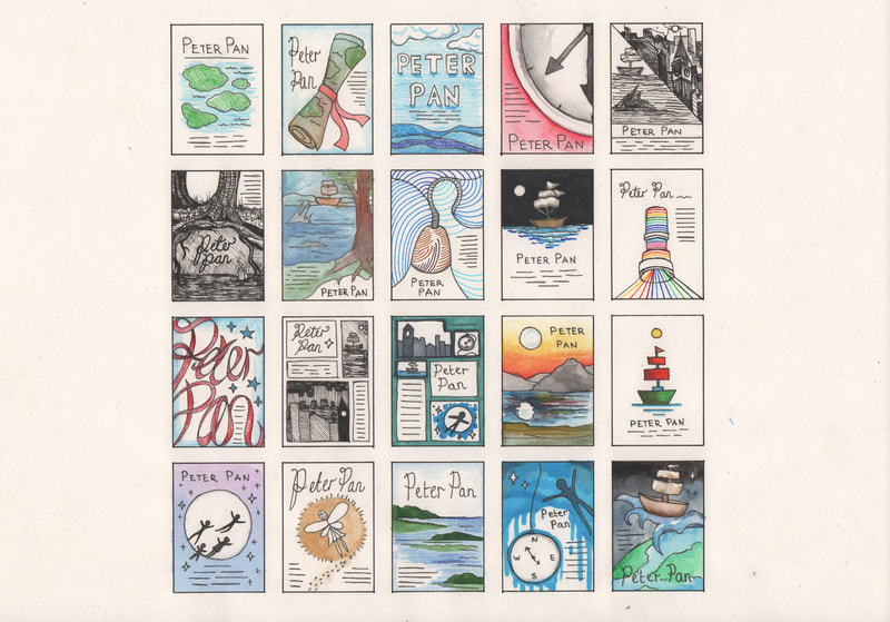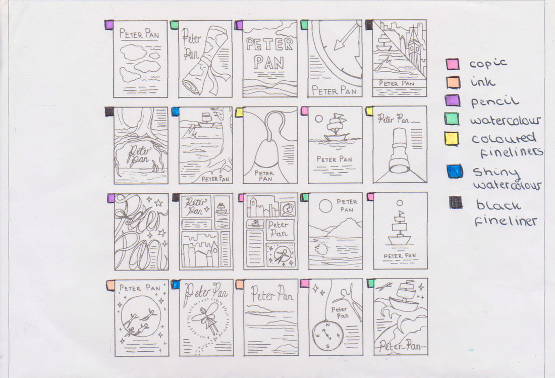The development and research helped me to create something that I wouldn't have created at the start of this week. Getting my ideas down on paper in a visual way instead of with word helped too. I liked how I could look at each of the little designs and get an idea of what they would look like as full scale designs without taking the time to make each one as a full scale illustration.