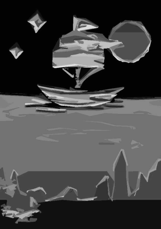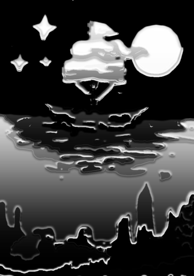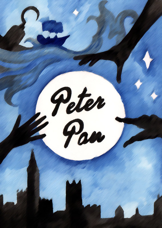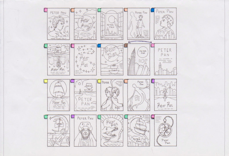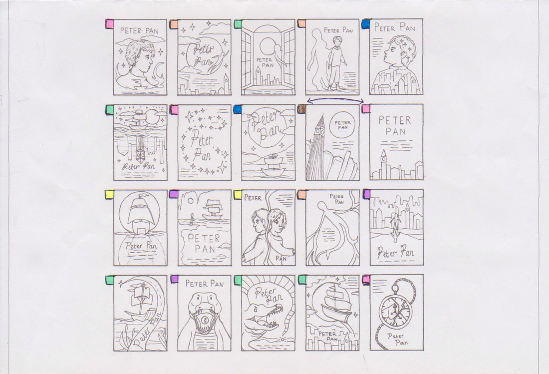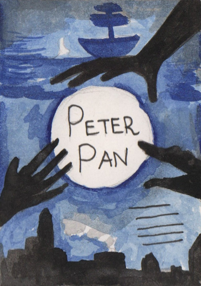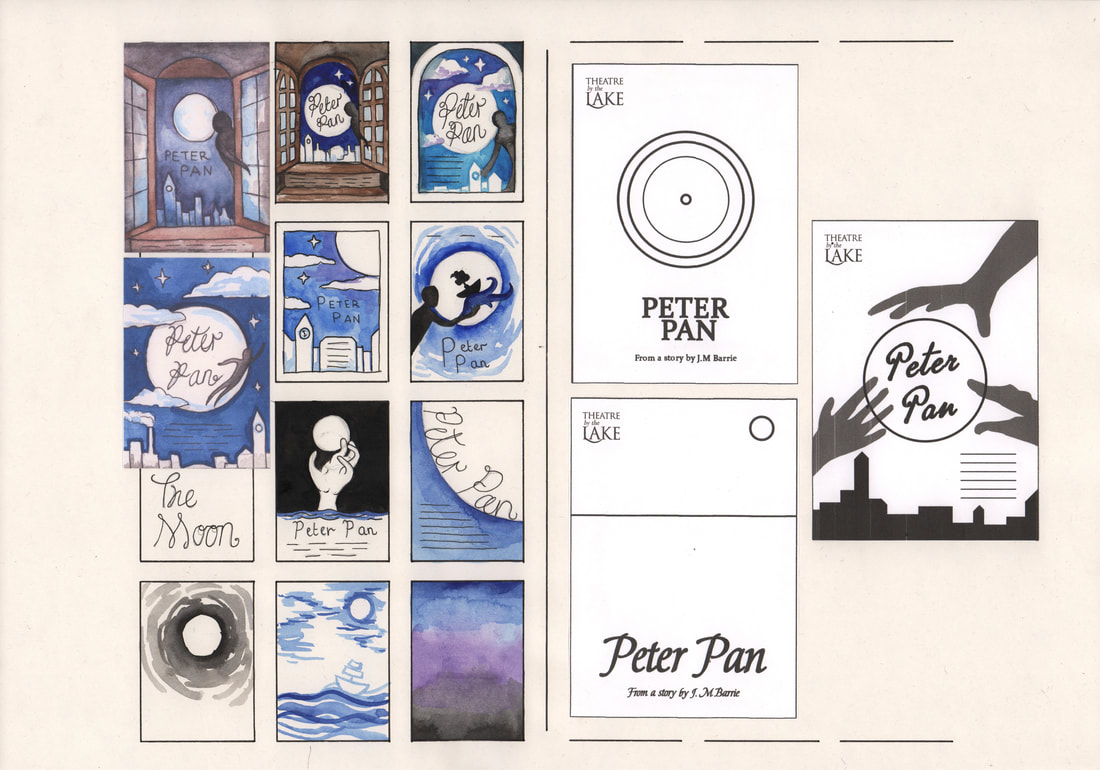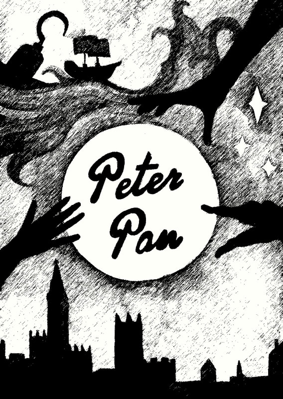I did like the concept of a shadow looking round the side of the window but after developing the idea I thought it was too similar in appearance to some of the other designs that I created. My favourite was the hand reaching up towards the moon, however it didn't really have a direct link to the story.